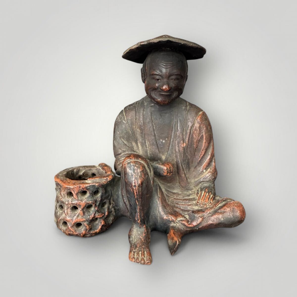 - 【NEOJI】時代物 江戸後期 古備前焼 漁師坐像 農家坐像 置物
