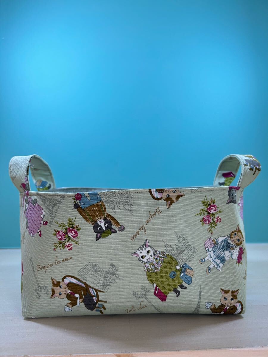 - ハンドメイド☆布バスケット グリーン ねこ パリ