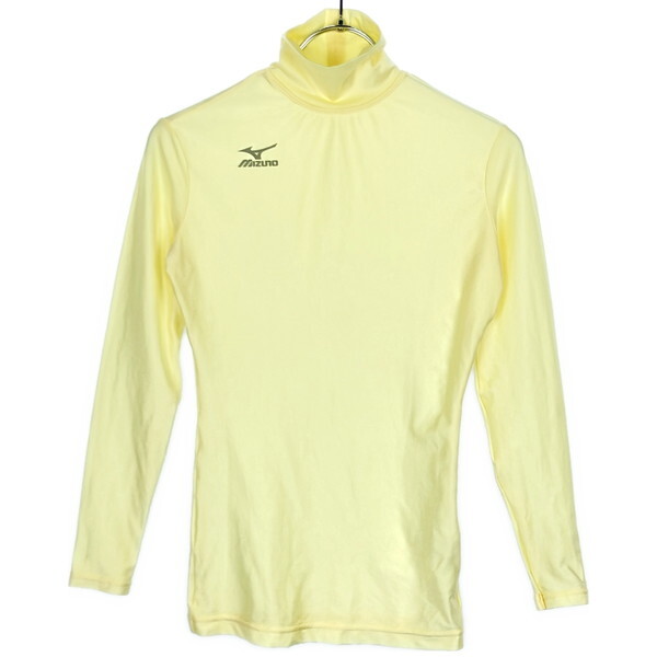 > 古着 レディースM MIZUNO/ミズノ インナーシャツ 長袖 ハイネック アンダーシャツ スポーツ ライトイエロー/シルバー A84YM956