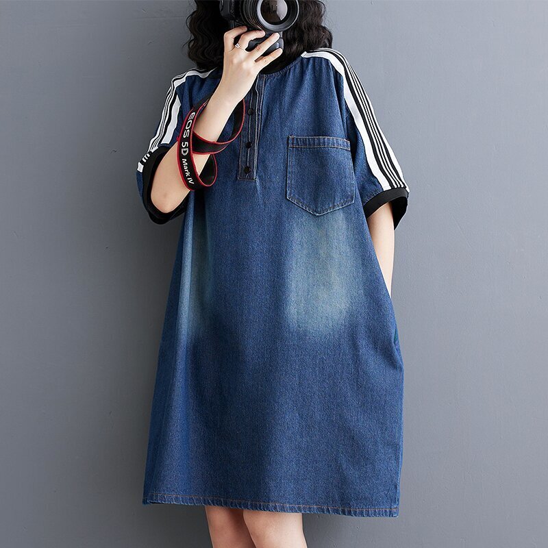 - LB581 デニムワンピース ワンピース 半袖 大人可愛い 通勤ワンピース 大きいサイズ OL オフィス デニム ひざ丈ワンピース L