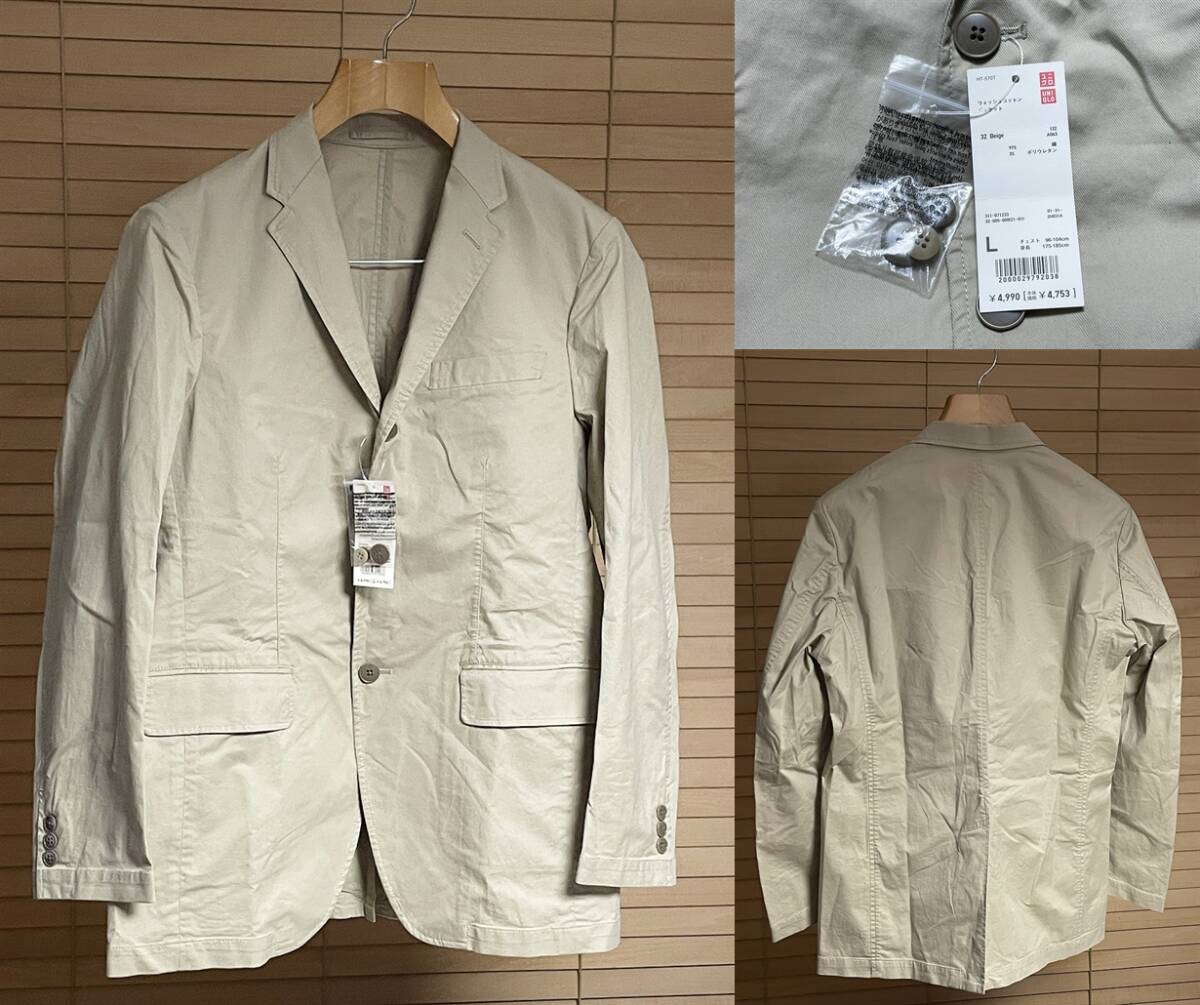 - 激安★【新品 国内正規品 定価4,990円】UNIQLO ユニクロ ストレッチ ウォッシュ コットン テーラード アンコン ジャケット L ベージュ