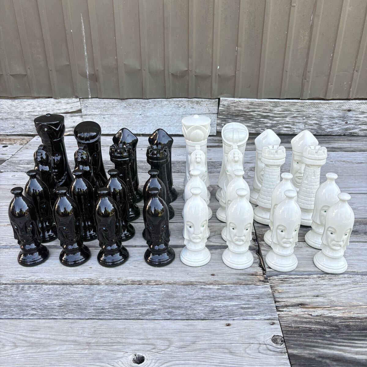 - アメリカビンテージ セラミック製 大型 チェス駒 32ピース ボード無
