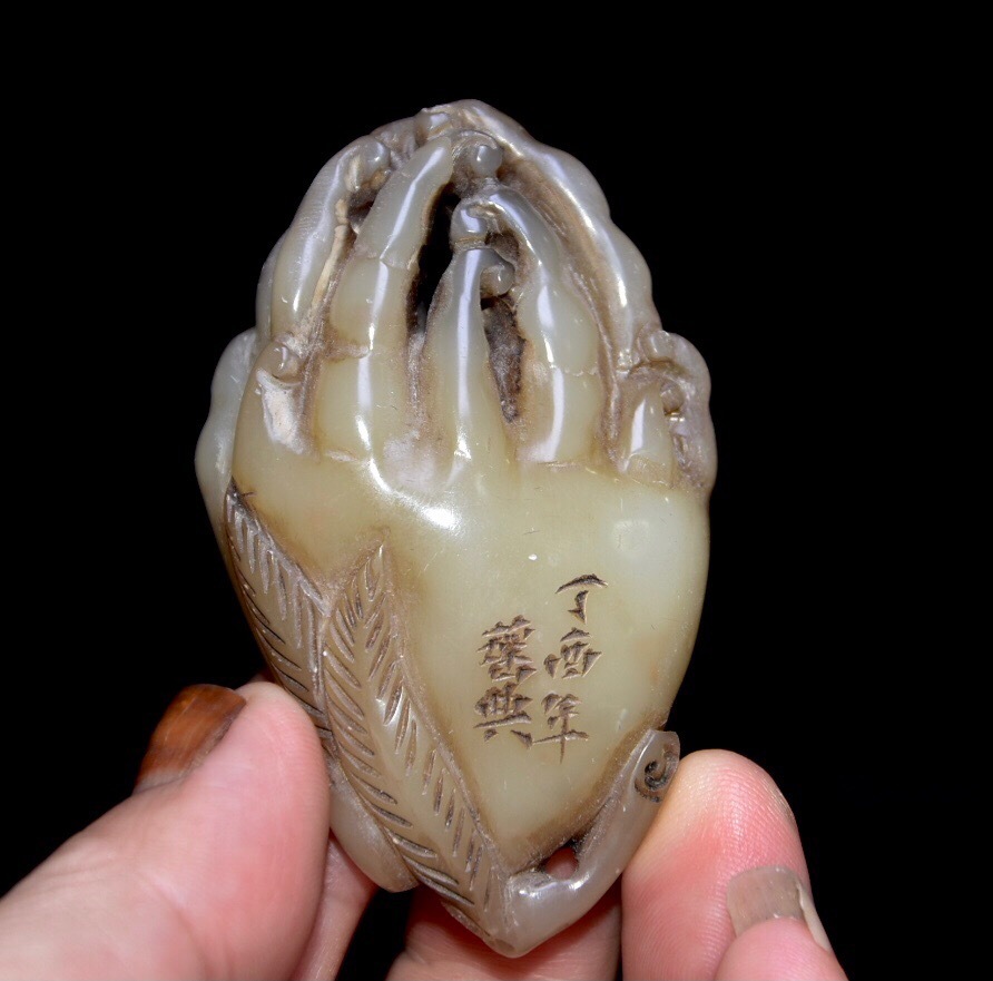 - 蔵友旧蔵出 寿山石 凍石 細密彫 仏手 箱付 貴重品 稀少物品 置物 賞物 中国時代美術品