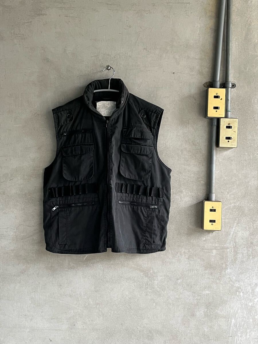 > 90s 90年代 00s 2000年代 ビンテージ シューティング ハンティングベスト ブラック パーカ フード ジップアップ 古着 アウトドア ワーク
