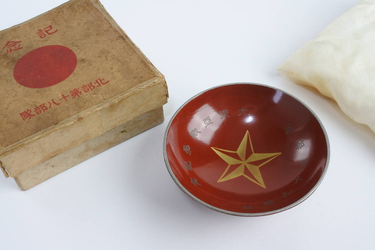 - 希少軍用品☆ 1937年 日中戦争勃発後編成北部第十八部隊 大東亜戦争記念木盃 軍盃