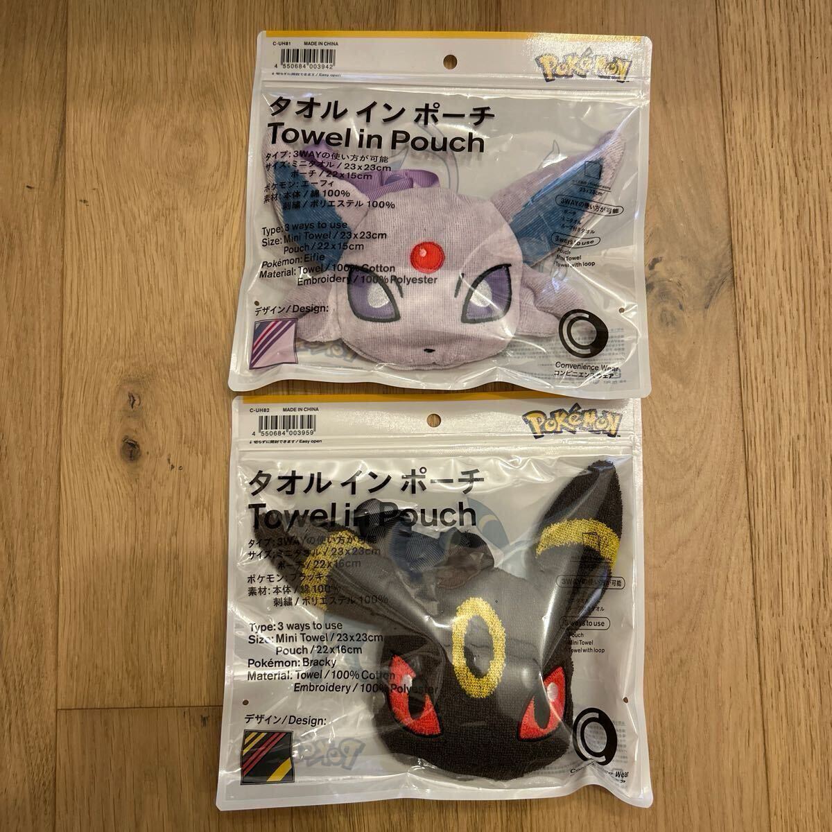 - 【新品未開封】ファミマ限定 ポケモン pokemon エーフィ ブラッキー 3way タオル イン ポーチ