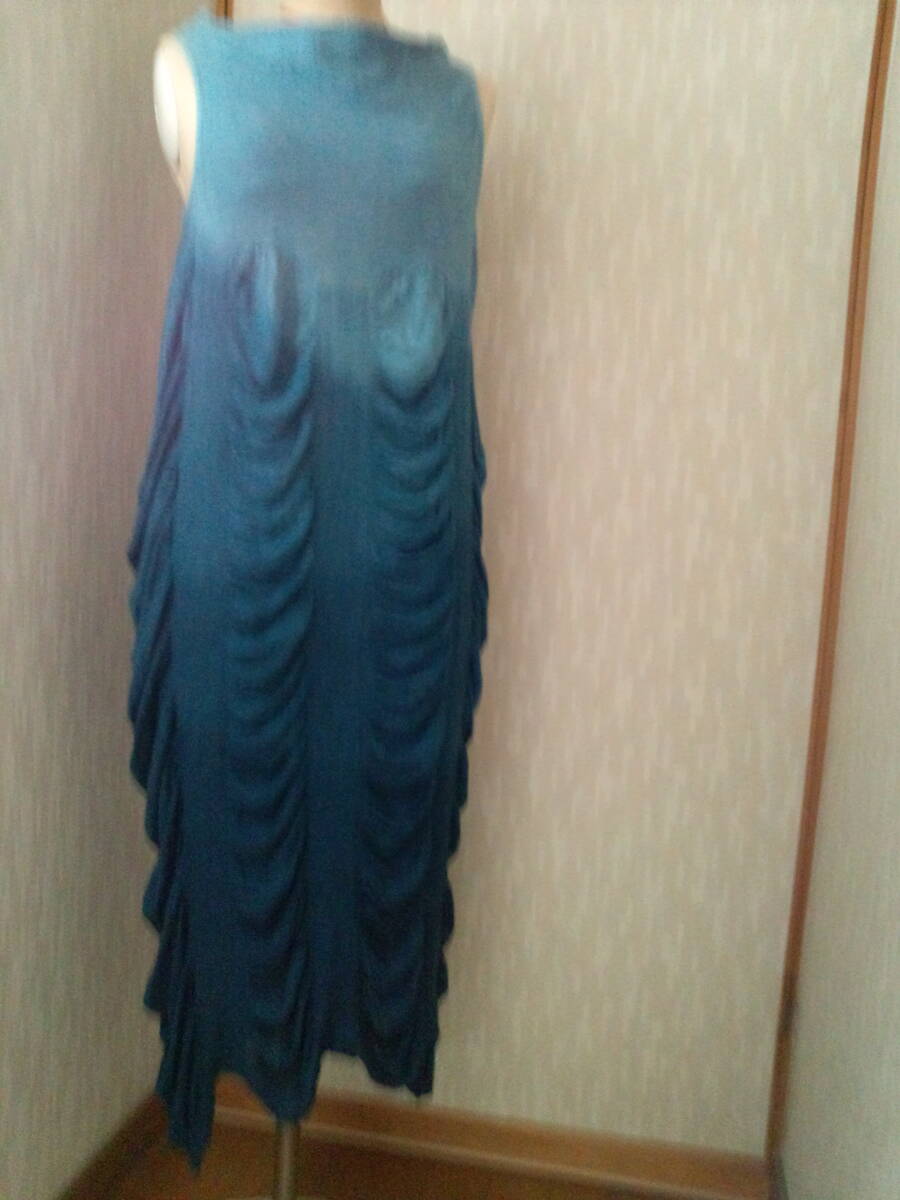 - 涼しい藍染ニット風ワンピース フリーサイズ