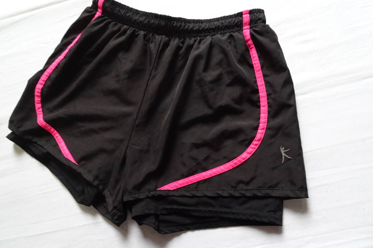 - ランニングパンツ/ショートパンツ/ピンクラインテープ貼付け縫/インナーパンツ付/ジョギング/スポーツ/黒/ブラック(6/24R7)