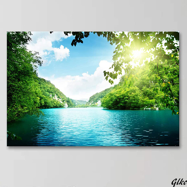 - 【カフェ、ホテル、オフィスなどにも映える洗練されたデザイン】 風水 絵画 山 太陽 壁掛けアート 自然 風景 インテリア 森林 装飾画 03
