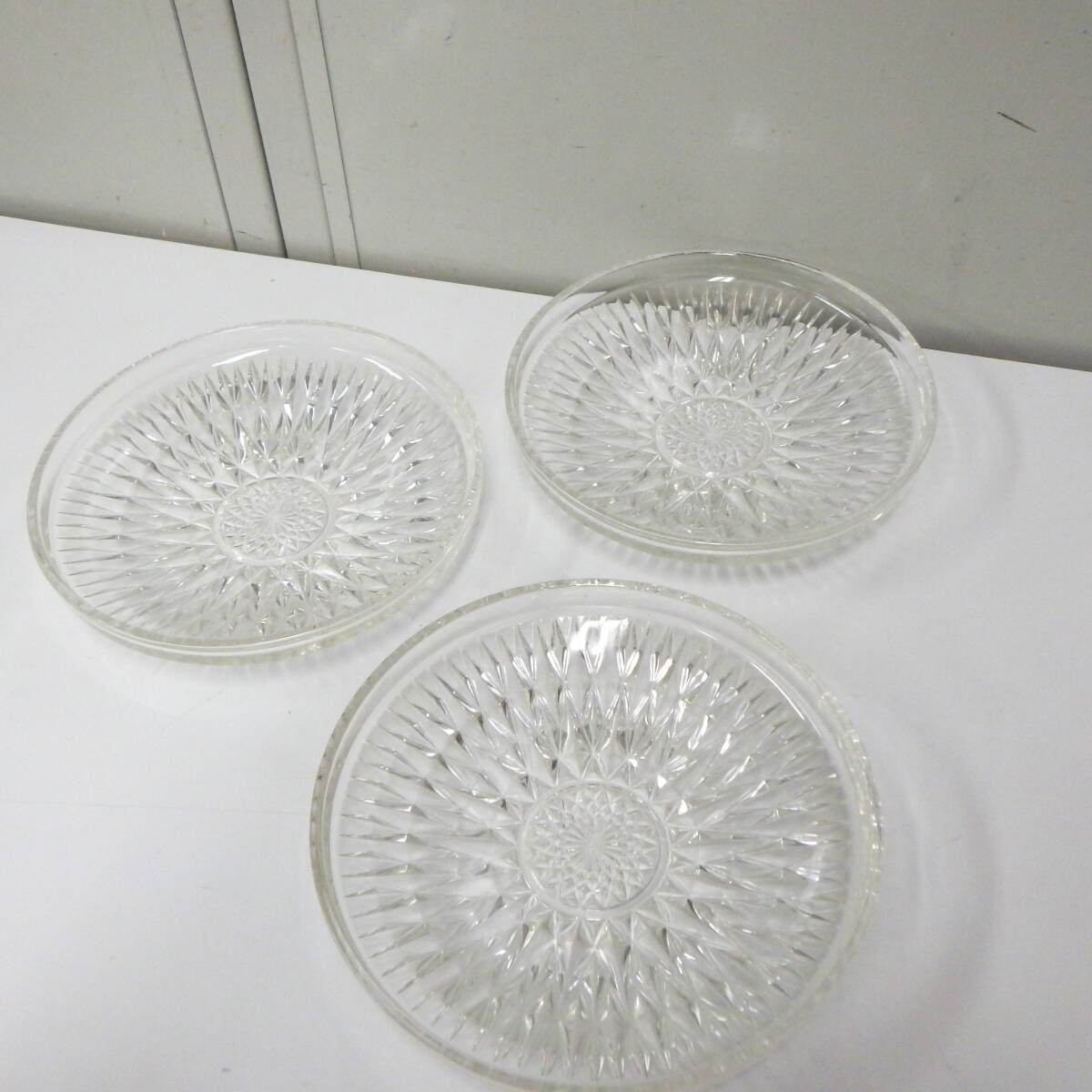 - 昭和 レトロ 硝子 ガラス皿 3枚 デザート皿 フルーツ皿 詳細不明