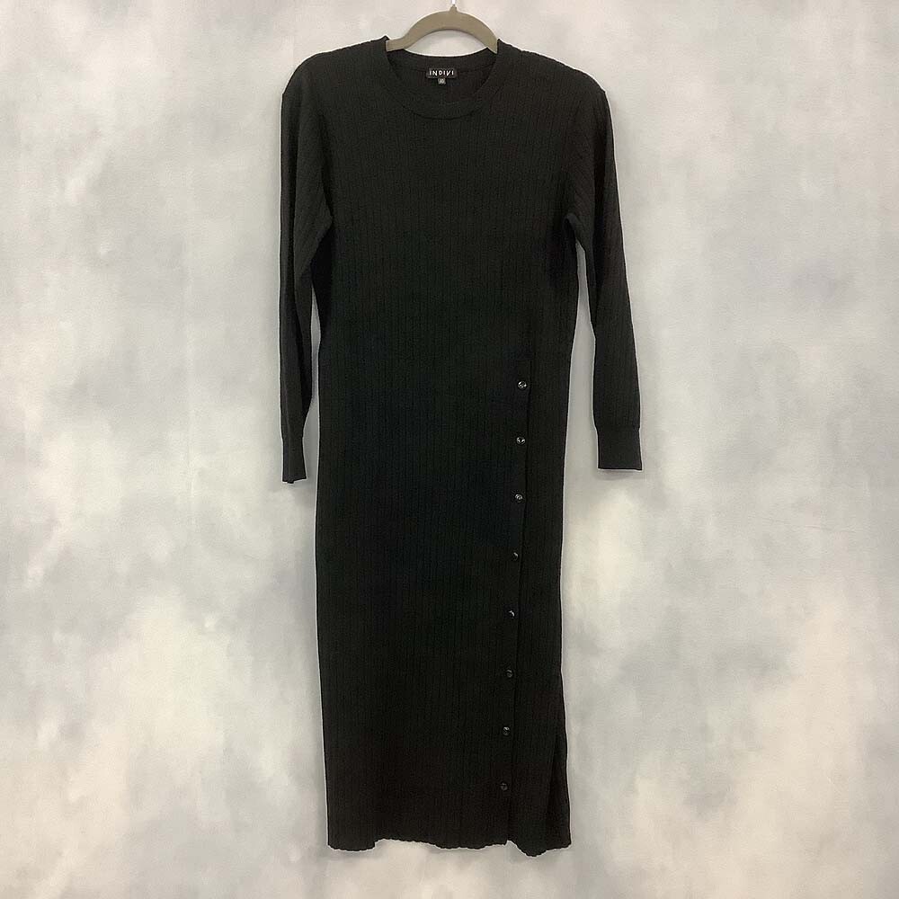 - INDIVI インディヴィ ニットワンピース ひざ丈 長袖 ブラック系 40 [PT16900]