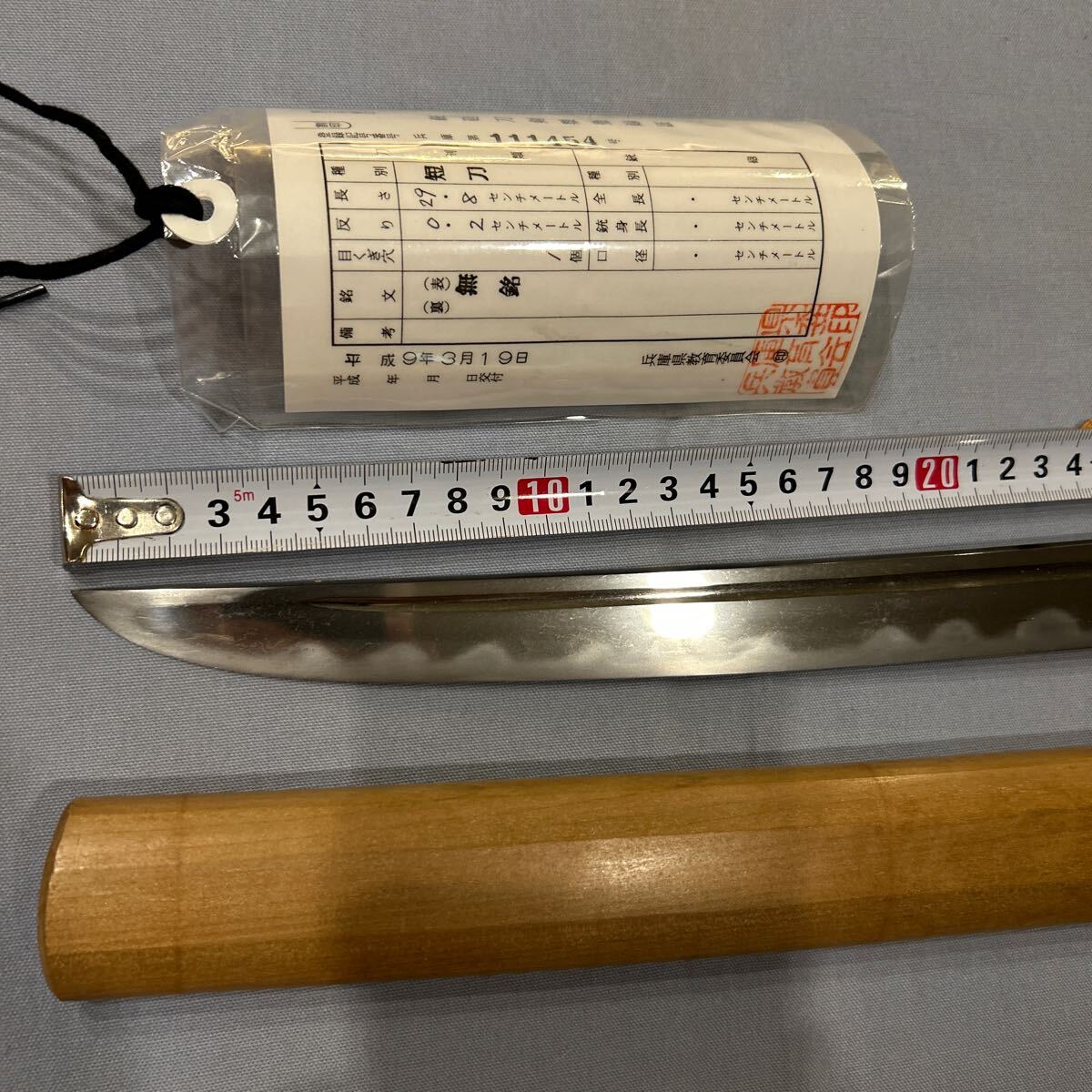- 短刀 無銘 樋あり 波紋あり 白鞘付き 登録付き
