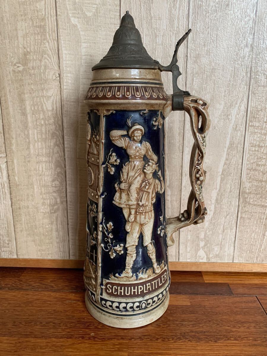 - ドイツ製 ヴィンテージ アンティーク ビアマグ ビールジョッキ 陶器 ビアジョッキ 陶器製 蓋付 ジョッキ