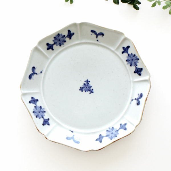 - お皿 プレート おしゃれ 中皿 取り皿 陶器 磁器 和食器 シンプル 日本製 古染花 八方 21センチプレート 送料無料(一部地域除く) msg2222