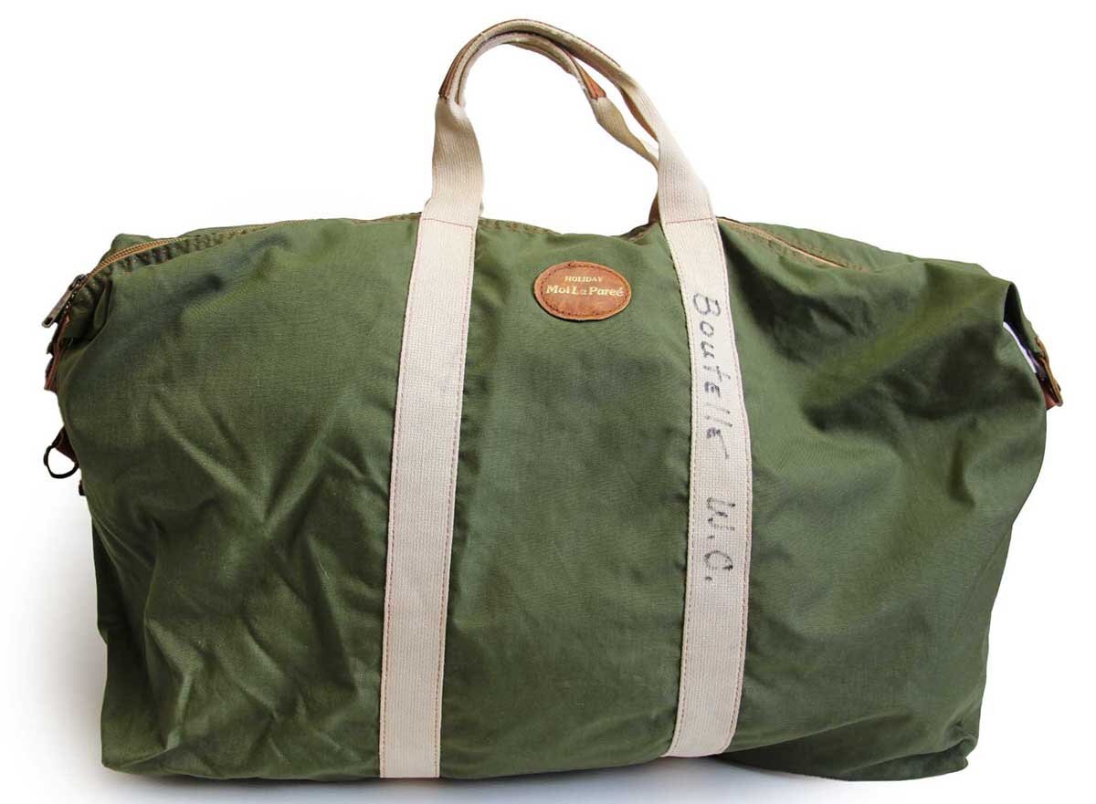 > ★70s UNKNOWN ナイロン ダッフルバッグ オリーブ×アイボリー 38★ビンテージ ボストンバッグ キットバッグ