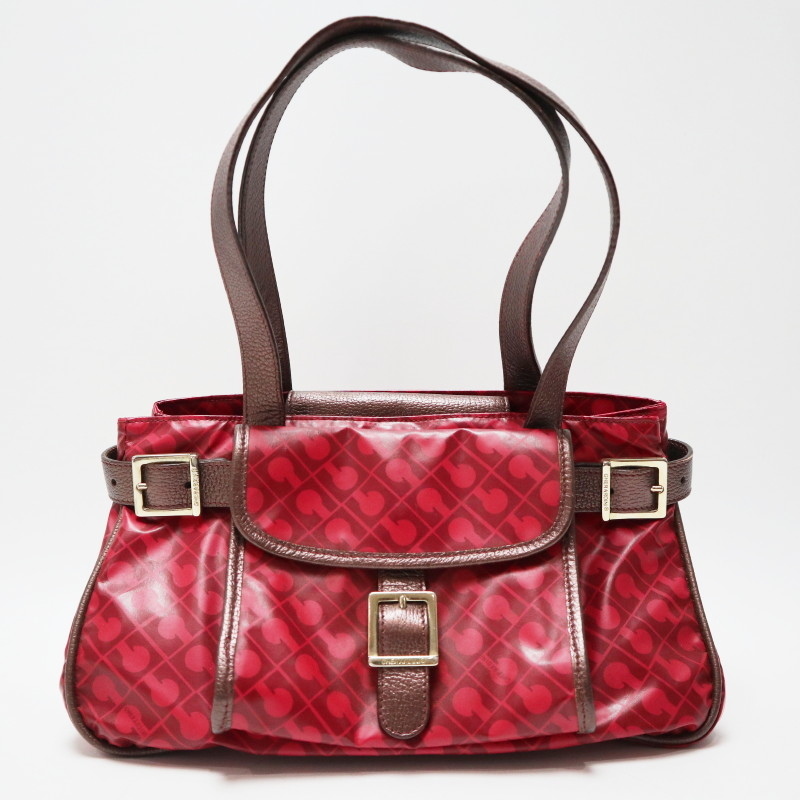 > K07-k005 GHERARDINI ゲラルディーニ ソフティ 総柄 PVC/レザ― ハンドバッグ トートバッグ レッド/ブラウン