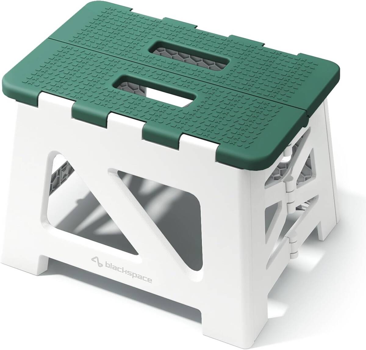 - BLACKSPACE 踏み台 折り畳み 高さ23CM ステップ台 スツール 椅子 チェア 脚立 折りたたみ 低い 小さい 耐荷重150kg [グリーン ホワイト]
