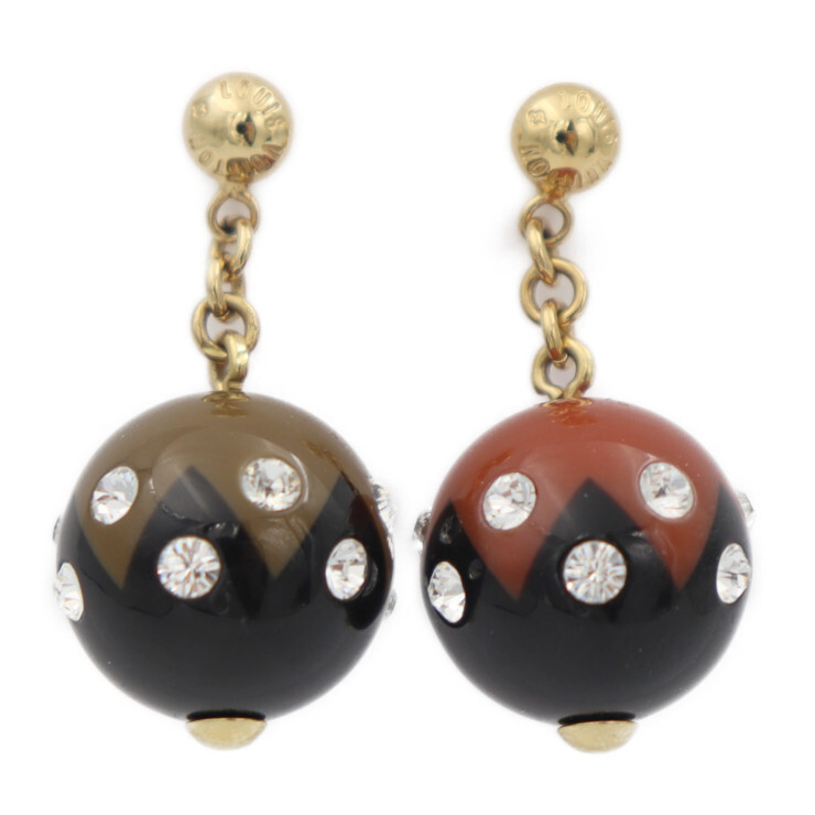 - 美品 ルイ ヴィトン ブックルドレイユ マグネティック ピアス M66397 レジン ラインストーン 黒 カーキ 煉【本物保証】