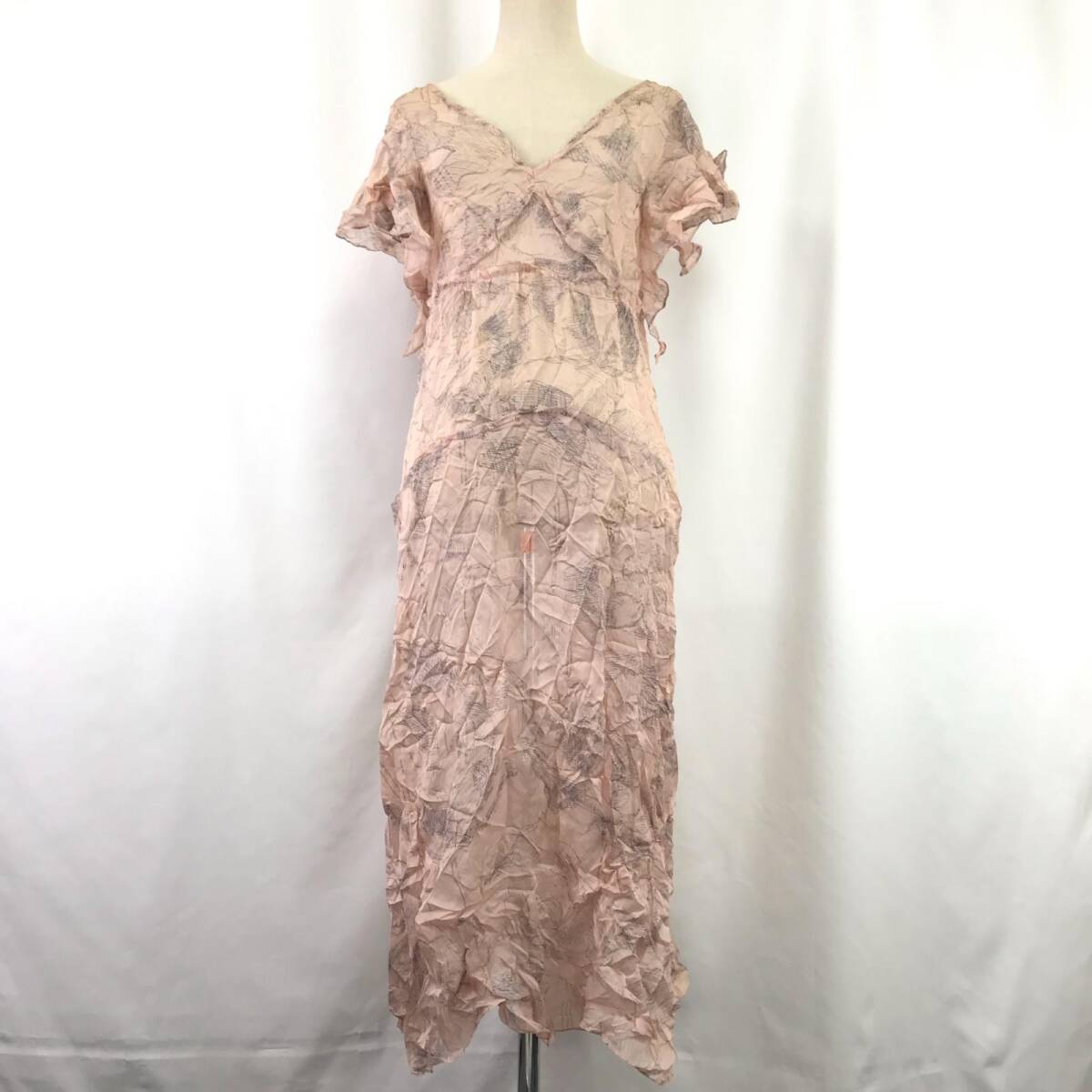 > Makiris【マキリス】 シルク100%/ワンピース 【size:M程度/ロング丈/ピンク/ラメ/pink】シースルー/レディース/dress◆BJ010-c