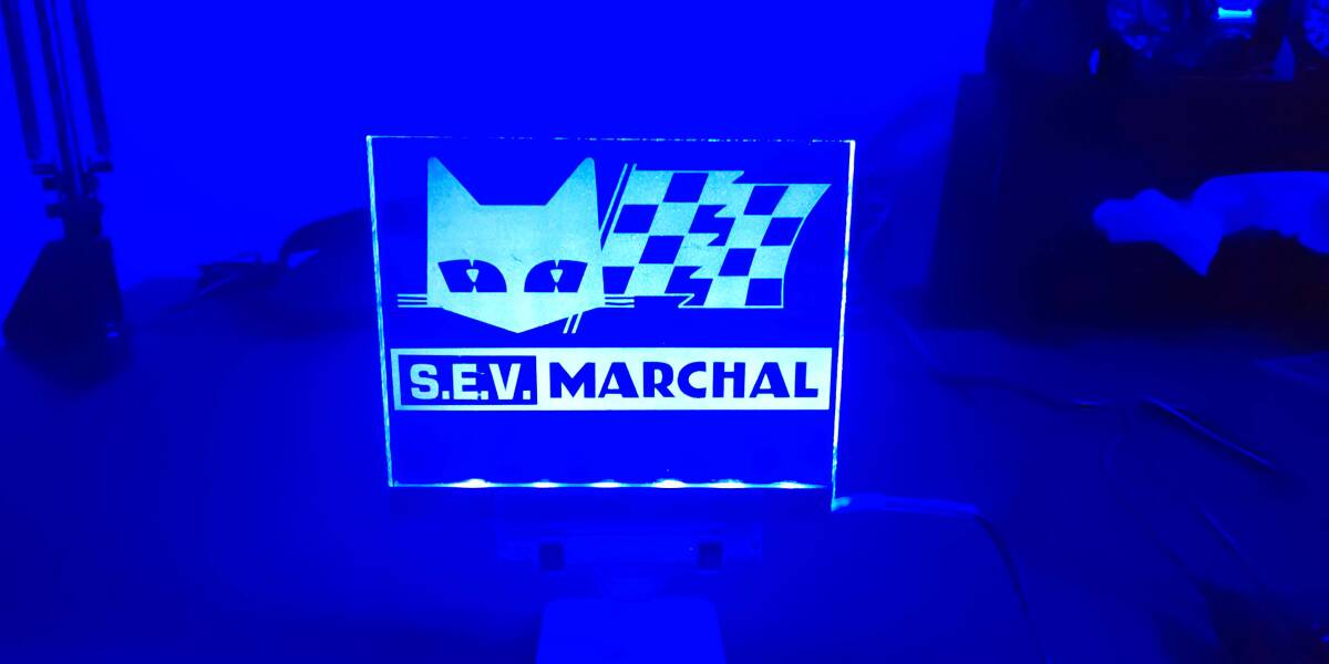 - マーシャル アクリル サインボード 光るアクリル板 12V用 LED 青 旧車