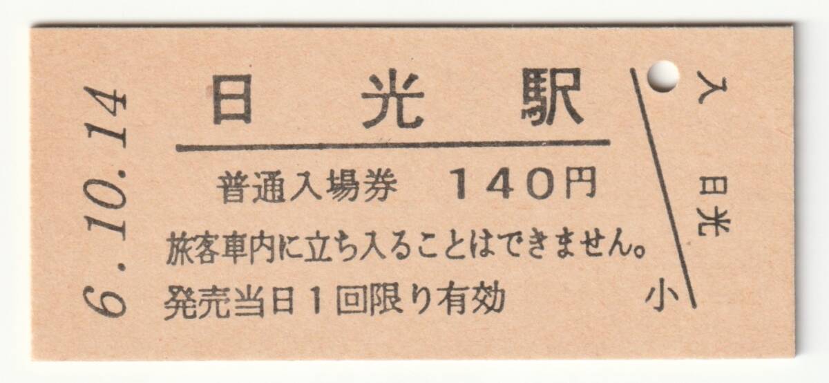 - 平成6年10月14日 日光線 日光駅 140円硬券普通入場券(日付印刷)