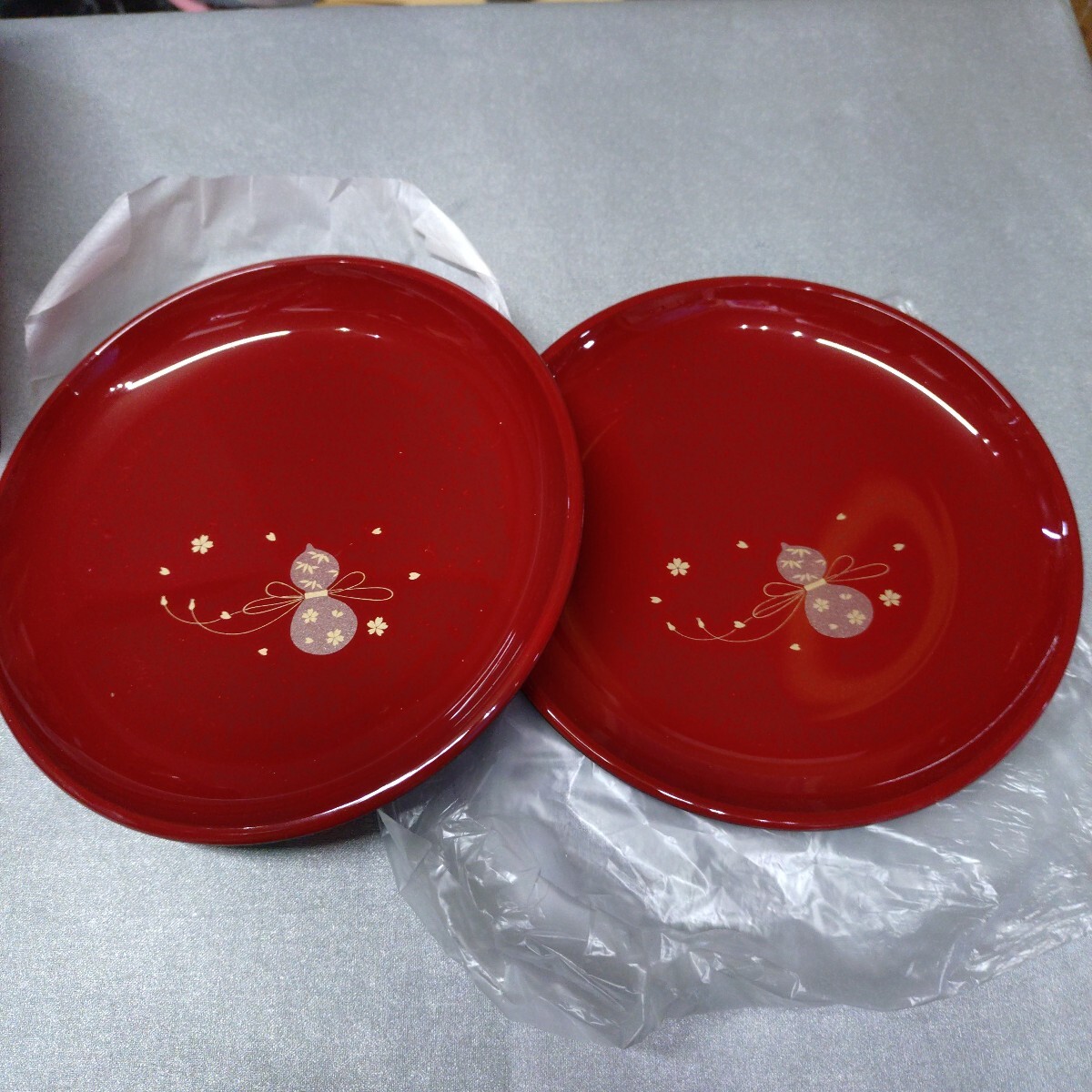 - 山中塗 丸取皿6枚 16cm ひょうたん柄