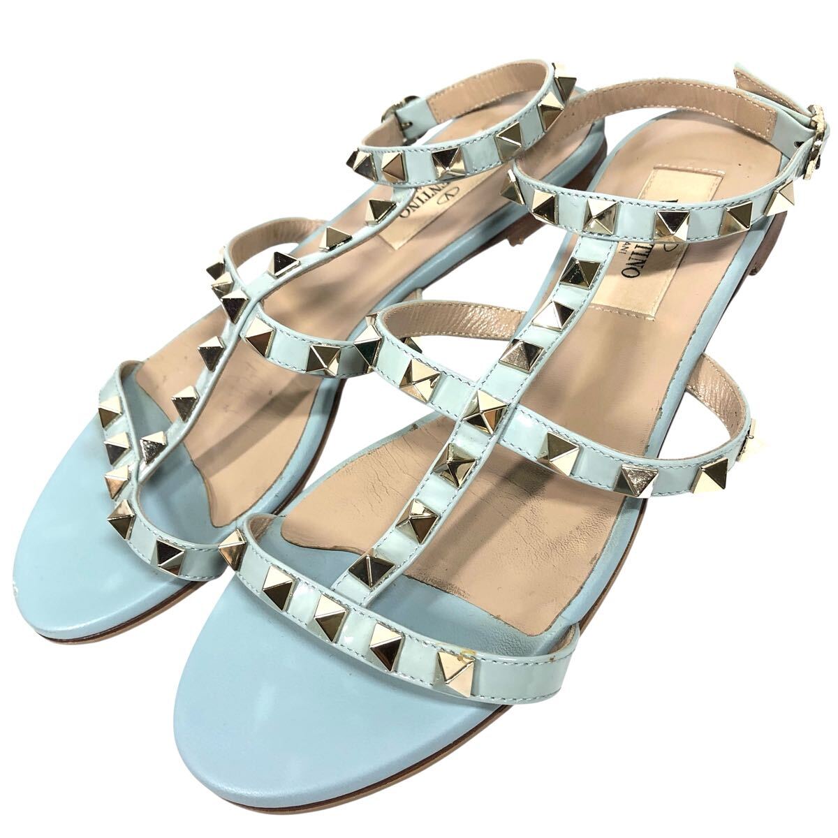- 【ヴァレンティノ】本物 VALENTINO GARAVANI 靴 21.5cm ロックスタッズ サンダル シューズ レザー×エナメルレザー レディース 伊製 34 1/2