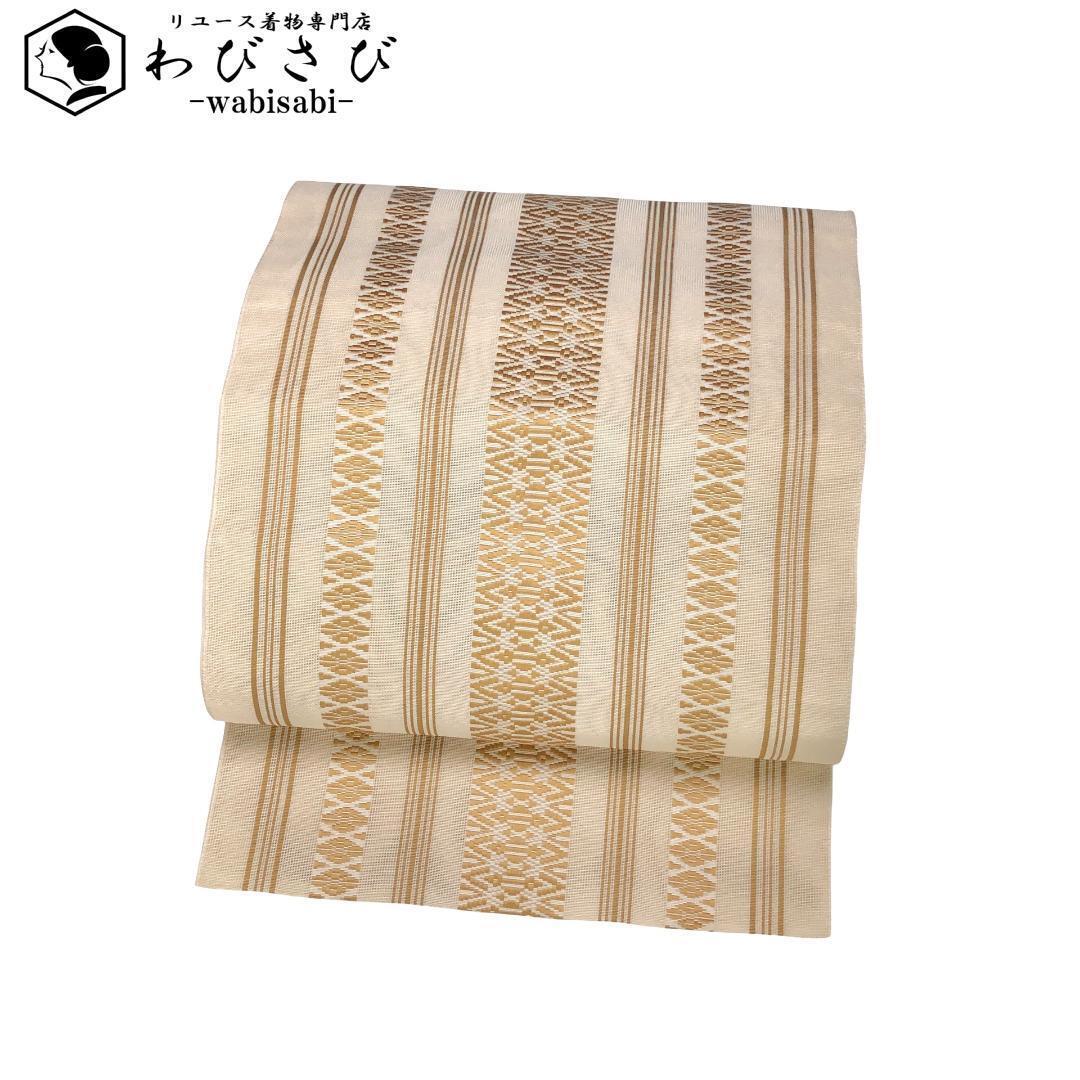 - 夏帯 名古屋帯 本場筑前博多織 紗献上 東京白茶色 O-5215 着物 きもの kimono 和服 和装 中古 リサイクル着物 【送料無料】