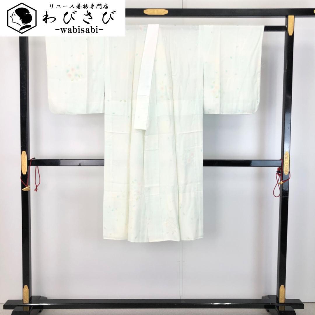 > 長襦袢 単衣 桜の花模様 暈し 卯の花色 半衿付 J-291 着物 きもの kimono 和服 和装 中古 リサイクル着物 【送料無料】