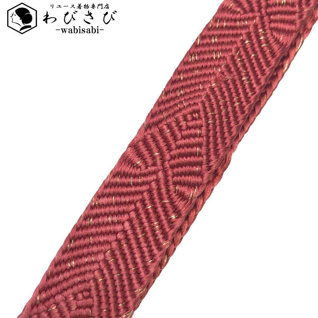- 和装小物 帯締め 正絹 平組紐 組紐 海老赤色 金糸 C-6005 着物 きもの kimono 和服 和装 中古 リサイクル着物 【送料無料】