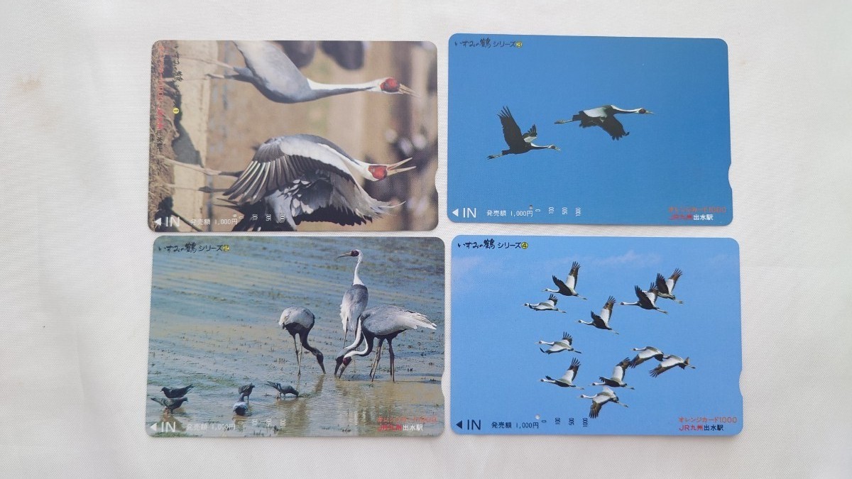 - ★JR九州★いずみの鶴シリーズ全4種★記念オレンジカード1穴使用済み4枚一括