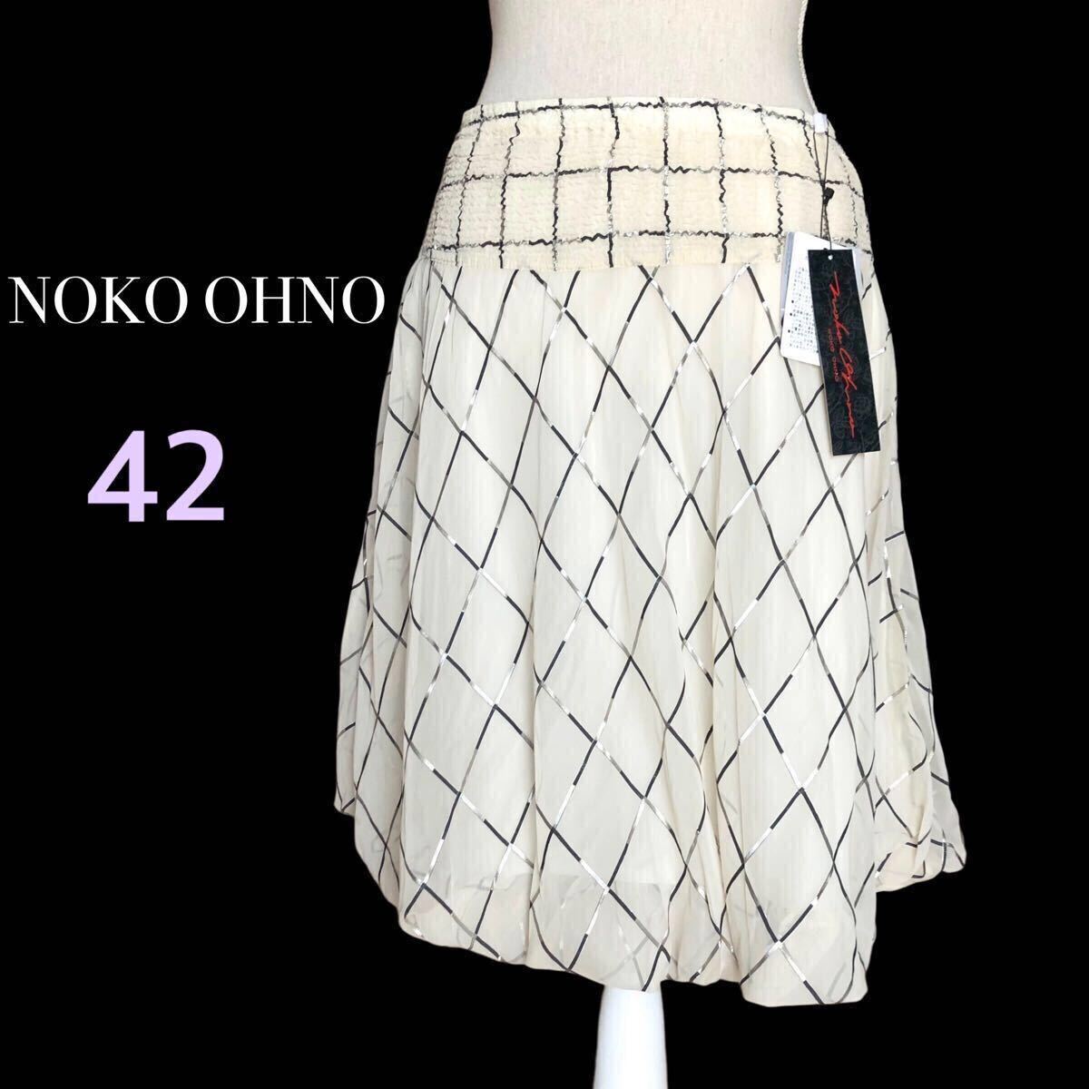 > 新品 NOKO OHNO ノコオーノ チェック バルーン スカート 薄手 ウエストゴム 膝丈 ショート M〜XLサイズ42 オフホワイト未使用タグ付き