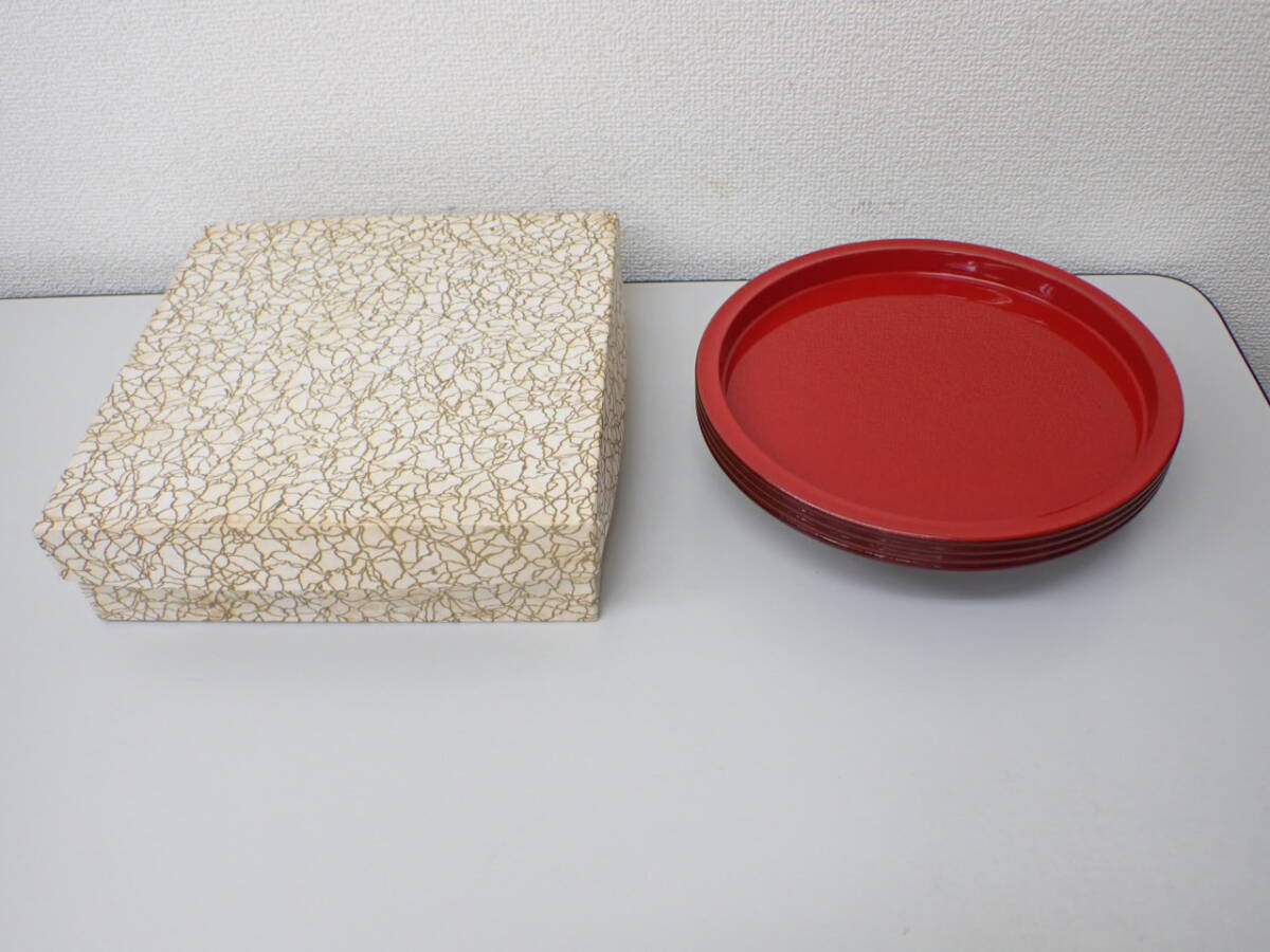 - 木製品-39; 高台 菓子皿・菓子器 朱塗 径;約18.1×宝;4.5cm 紙箱 (漆器・漆芸) ★