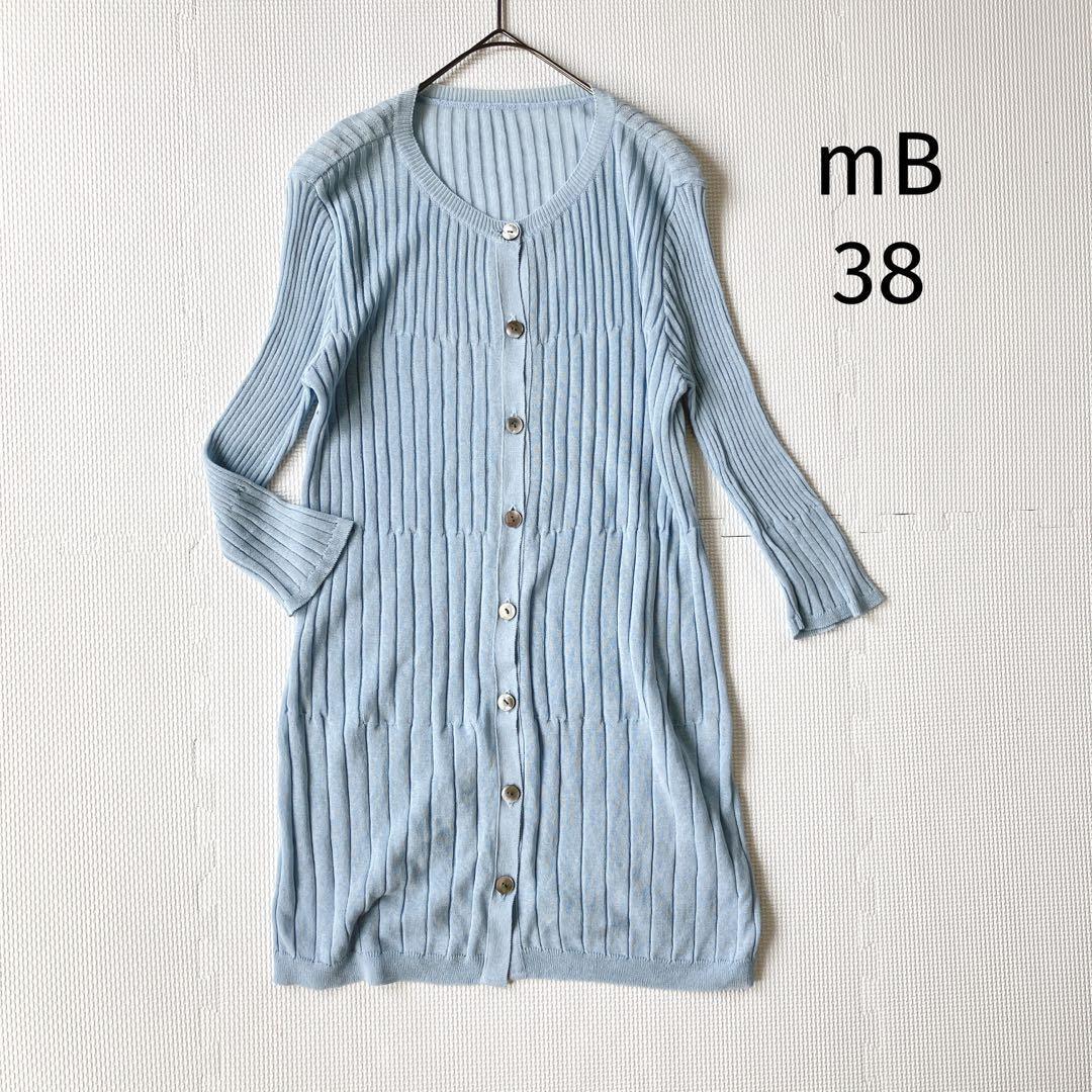 - mB エムビー カーディガン【38】七分袖 薄手 リブ ライトブルー