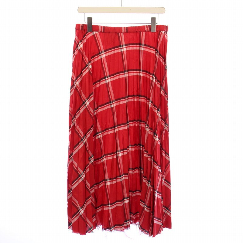 - エンネオット N8 プリーツスカート フレア イージー ミモレ ロング ウエストゴム チェック柄 シルク 44 赤 レッド