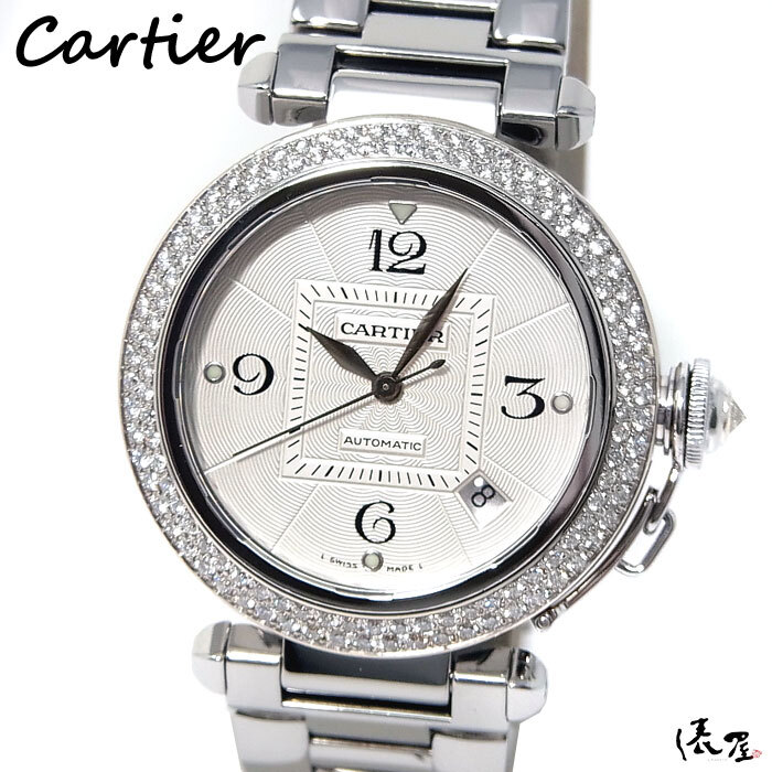 > 【カルティエ】パシャ 38mm ダイヤベゼル 自動巻 OH 極美品 時計 Cartier Pasha 俵屋