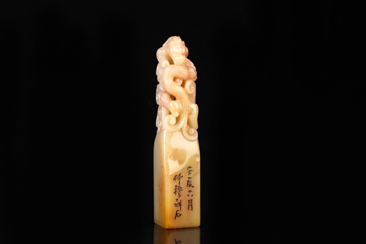 - 「清 仲穆篆 老寿山石 芙蓉石彫り (真趣) 魑龍 印章」極細工 擺件 古賞物 中国古美術 旧蔵出