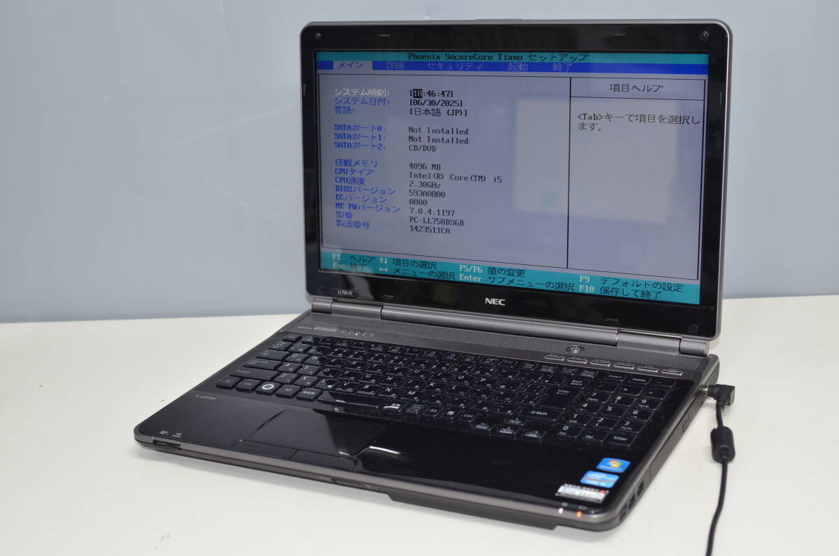 > 【ジャンク品】ノートPC NEC LL750/D core i5-2410M メモリー4GB 15.6インチ