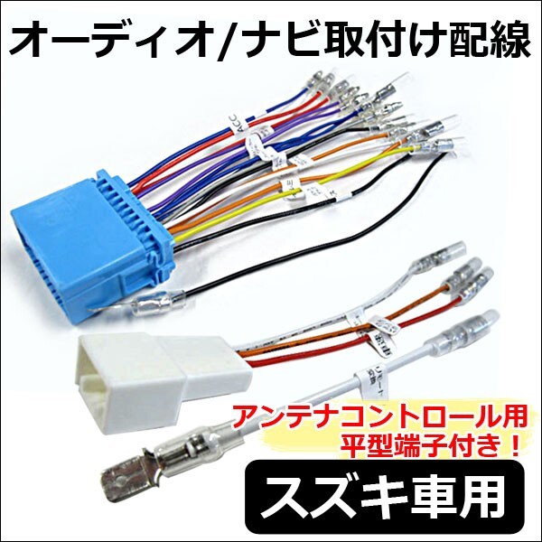 > 【互換品】(ac294) スズキ車用(B001-TV06) 市販オーディオ・ナビ取付け配線 / アンテナコントロール用平型端子付き