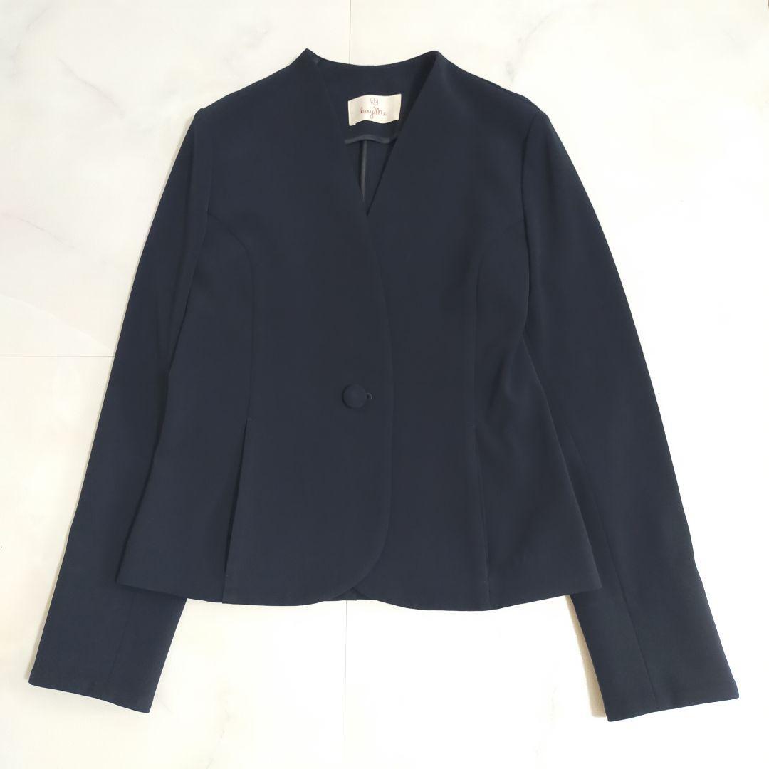 - 名品 ケイミー Kay me スマートストレッチ ノーカラージャケット ネイビー 7 カラーレス オフィスカジュアル 通勤 通学 面接 面談 七五三