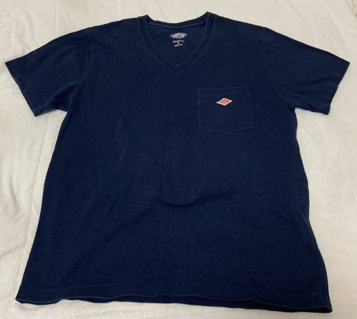 - DANTON! ダントン! 定番! 半袖TEE! Tシャツ! カットソー! 胸ポケット! Vネック! ロゴ! マーク! ワンポイント! ネイビー! SIZE 34