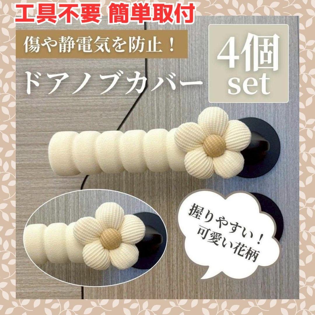 - ドアノブカバー 4本 ドアハンドル 衝突 静電気防止 工具不要 ベージュ cc-5029-3