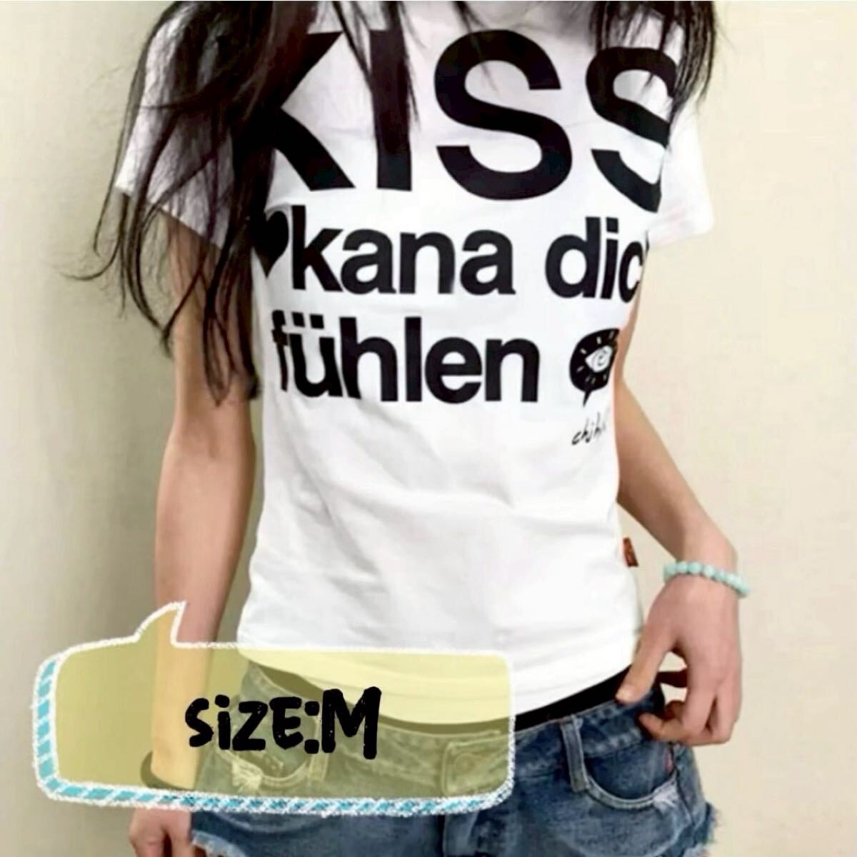- ピチT Y2K 原宿系 韓国ファッション 平成ギャル 英字Tシャツ ホワイト M