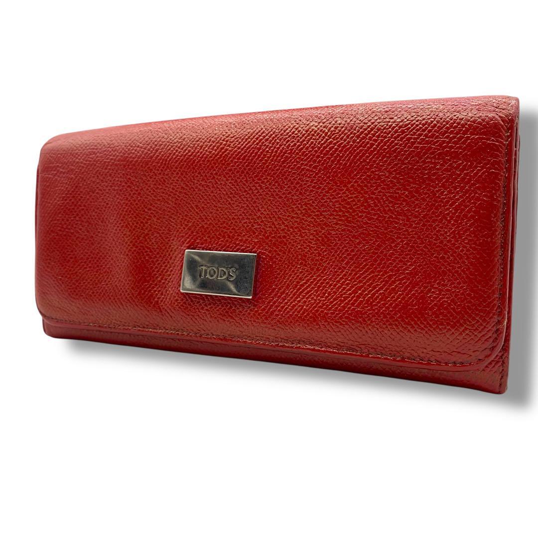 - トッズ レザー 折りたたみ 長財布 赤 レッド