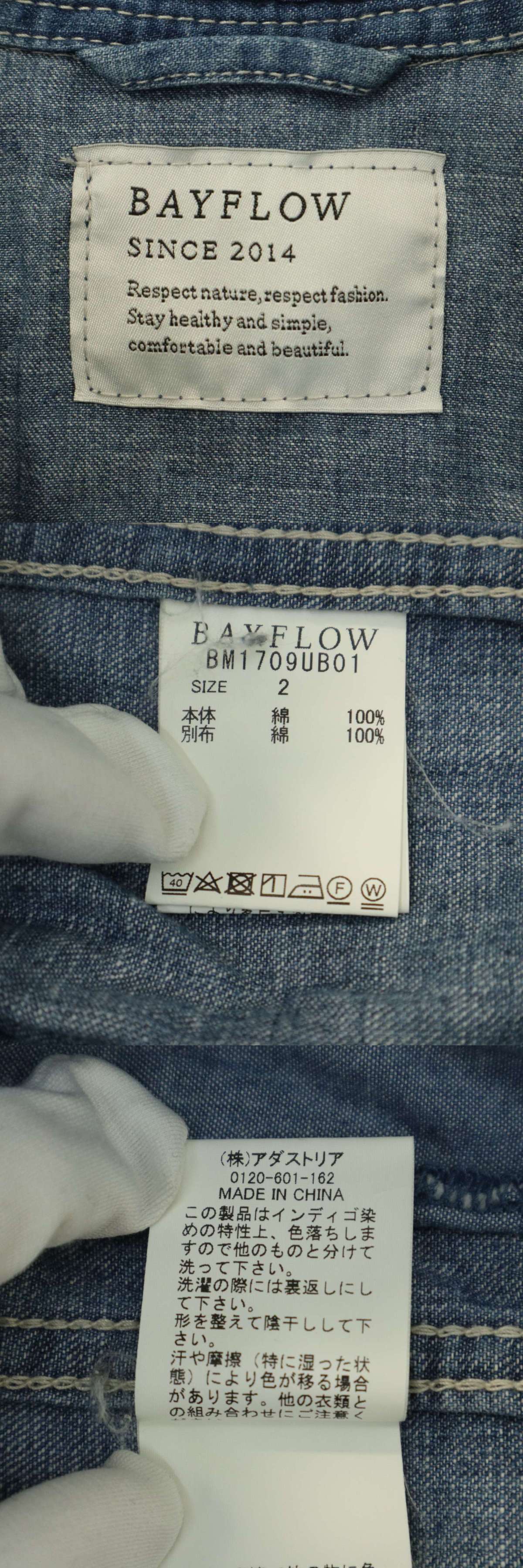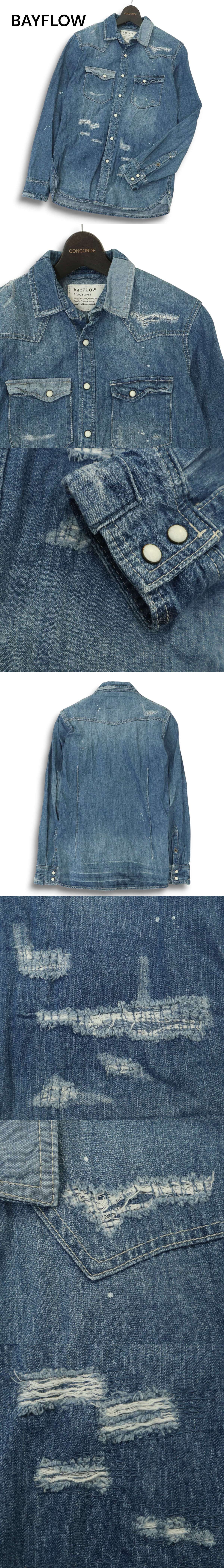 > BAYFLOW ベイフロー ペンキ リペア&USED加工★ 長袖 ウエスタン デニム シャツ Sz.2 メンズ