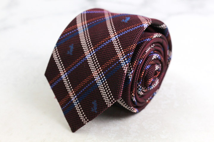 - ディズニー ブランド ネクタイ ミッキー チェック柄 格子柄 シルク PO メンズ ワインレッド Disney