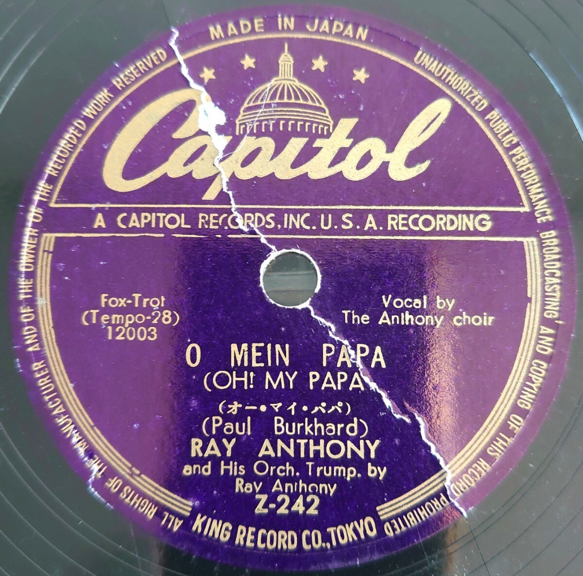 - 【SP盤レコード/ヒビ大】Capitol Z-242/O MEIN PAPA(OH!MY PAPA-オー・マイ・パパ)/SECRET LOVE(秘めたる恋)/RAY ANTHONY-レイ・アンソニー