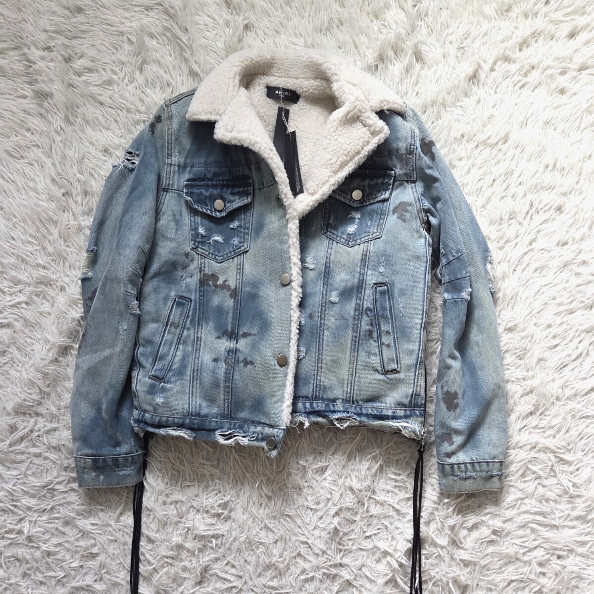 - 希少 AMIRI アミリ ムートン レザー ボア クラッシュ ダメージ デニム Gジャン ジャケット インディゴ S マイケルb ジョーダン