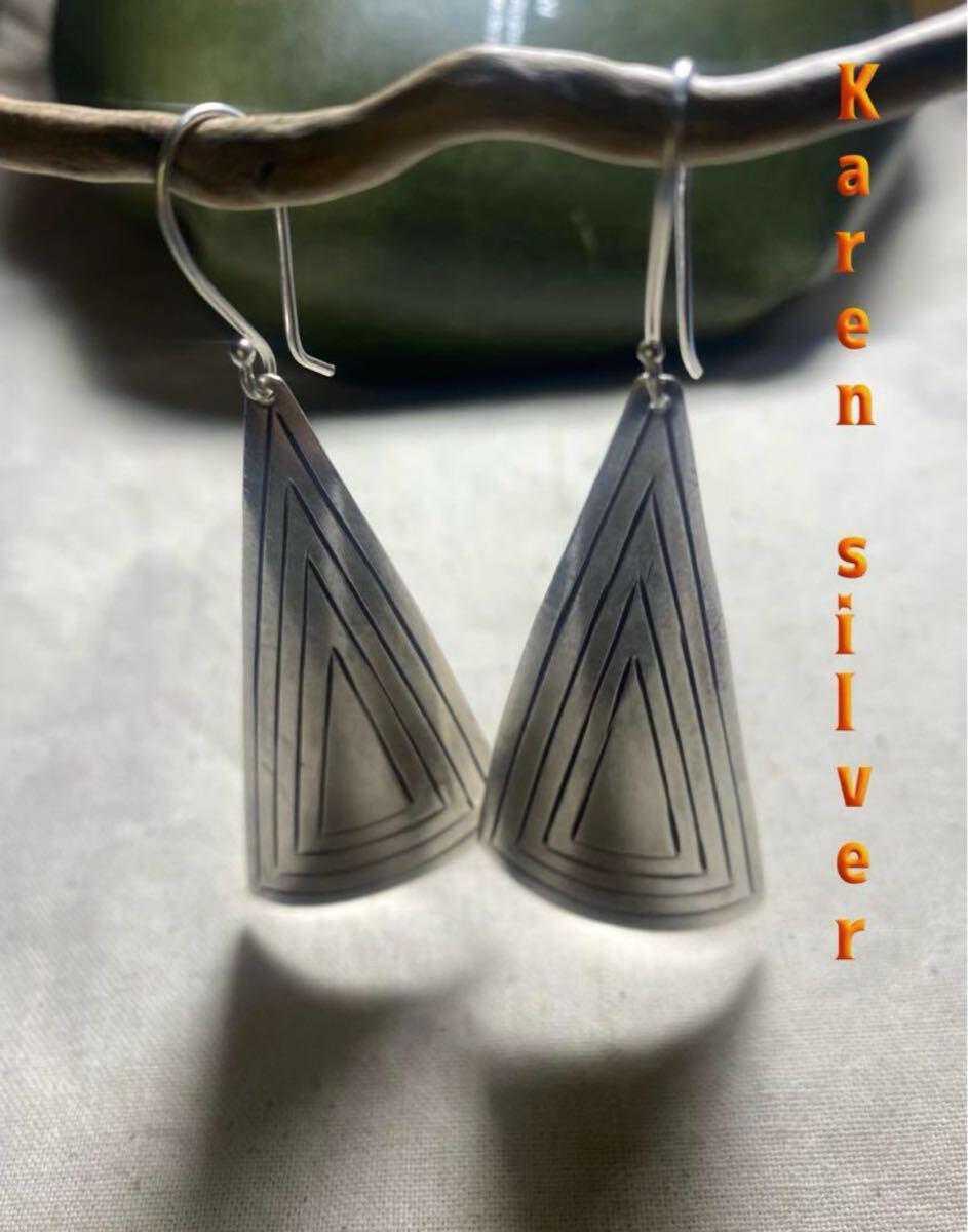- R639らニッコ2 カレンシルバーピアス 三角 トライアングル カレンシルバー925 高純度 手作り