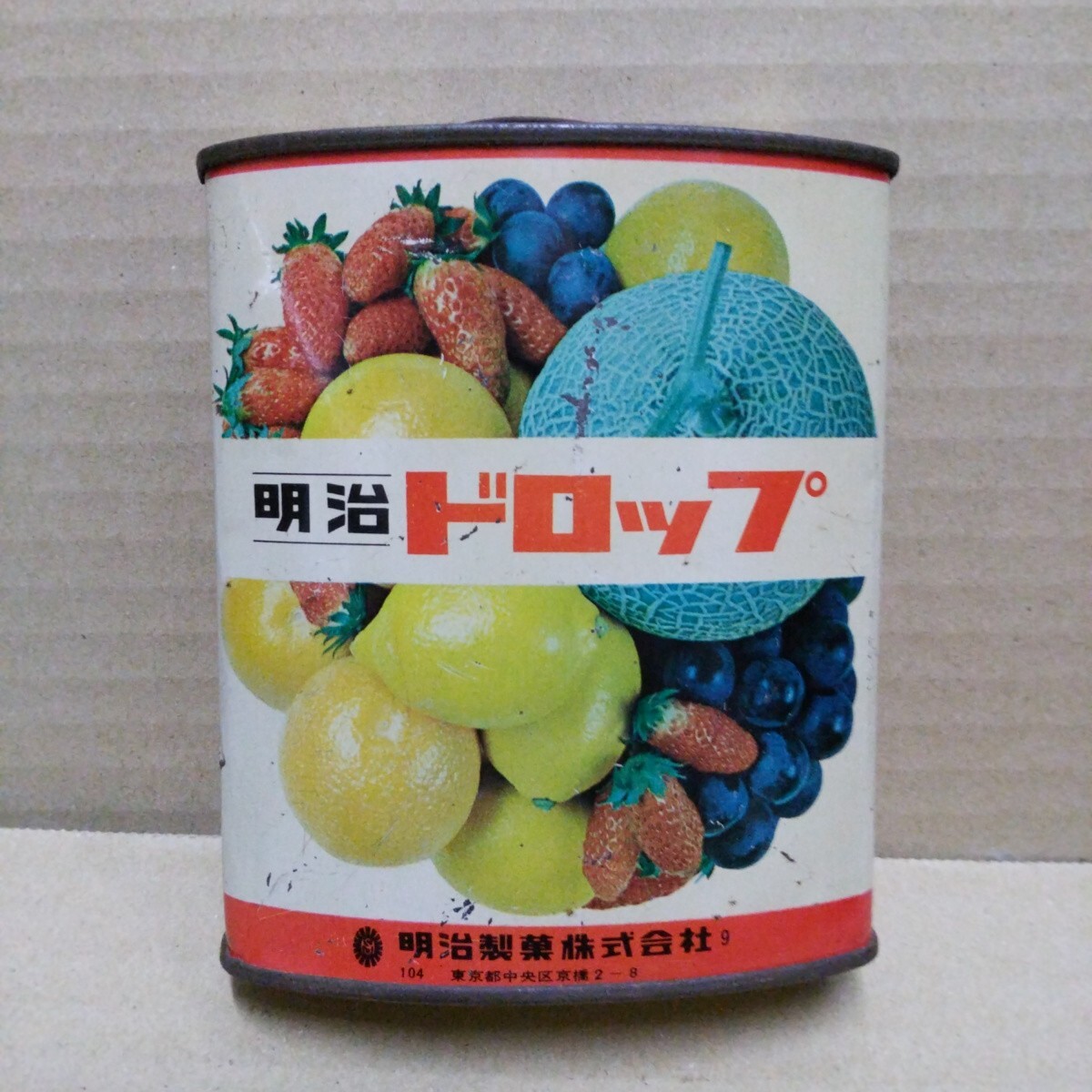 - 昭和レトロ 明治ドロップ 空き缶 当時物。